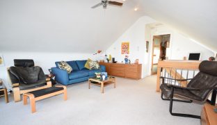 Large picture window with fully glazed French doors leading out to a step-out Juliet balcony. Stunning views out over the river and the open countryside beyond. Fitted blinds. Velux window to side. Access to eaves, ceiling fan.